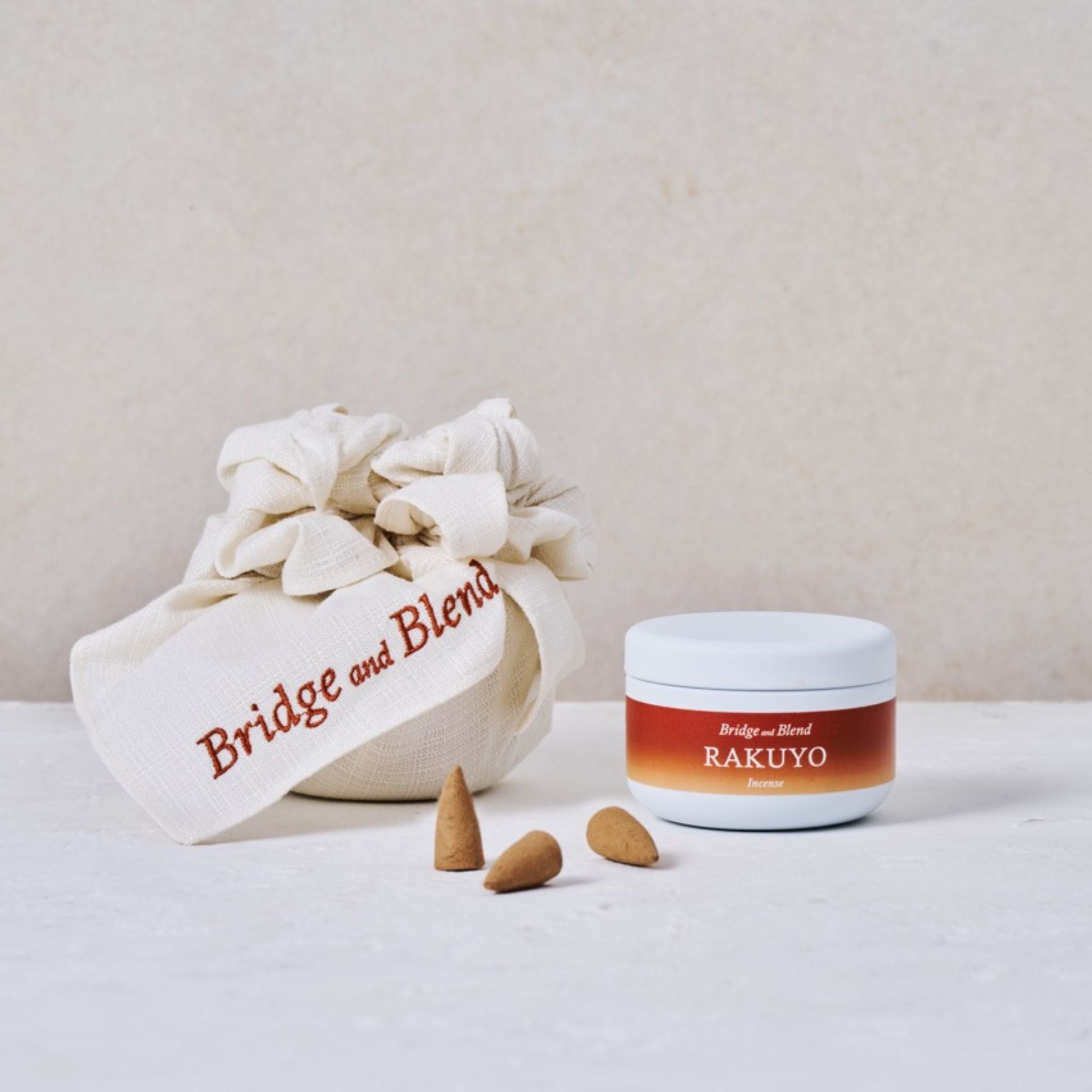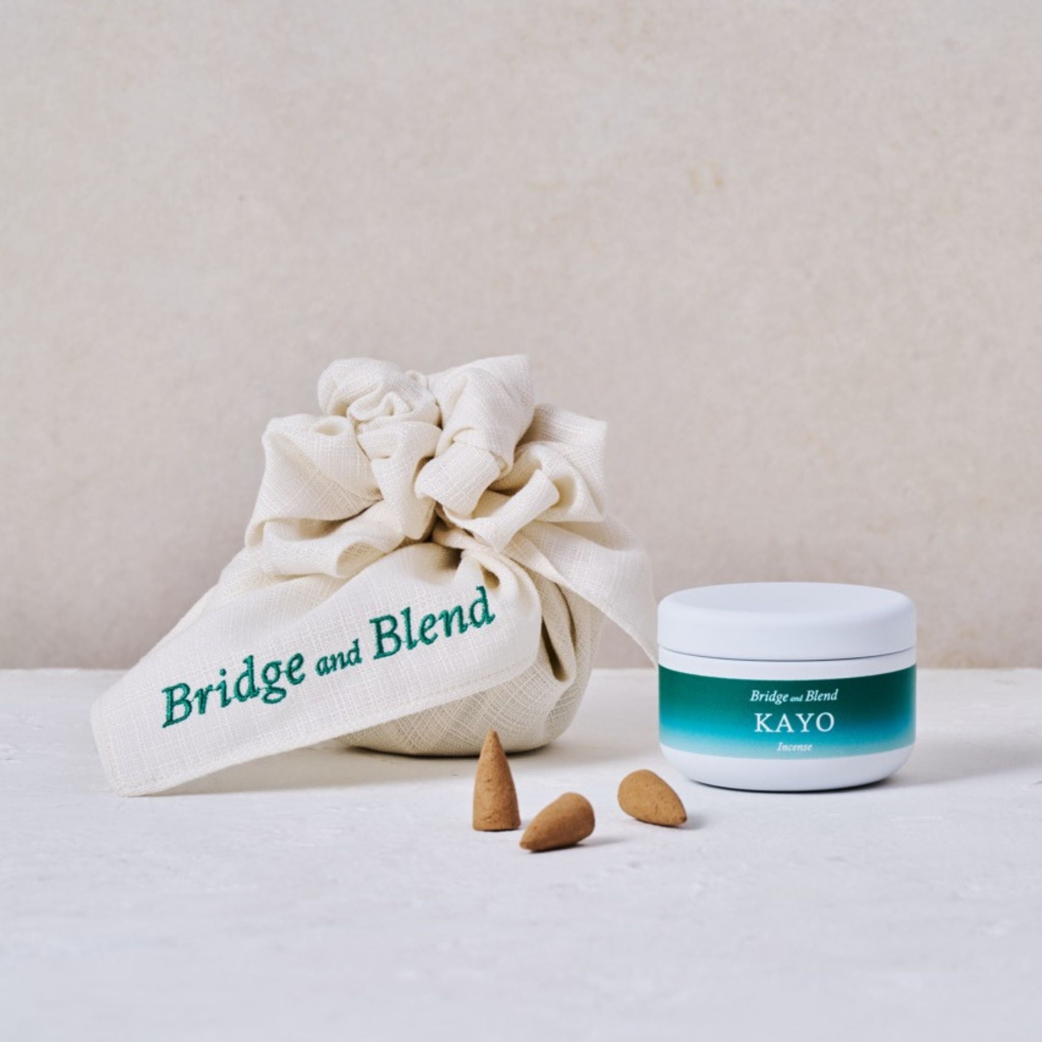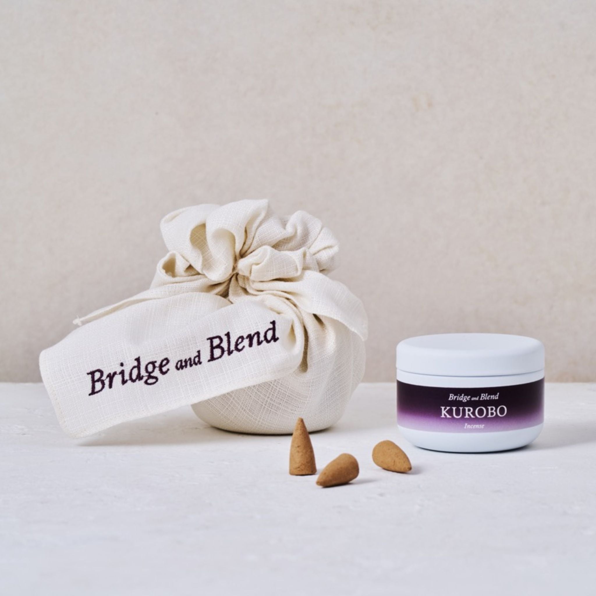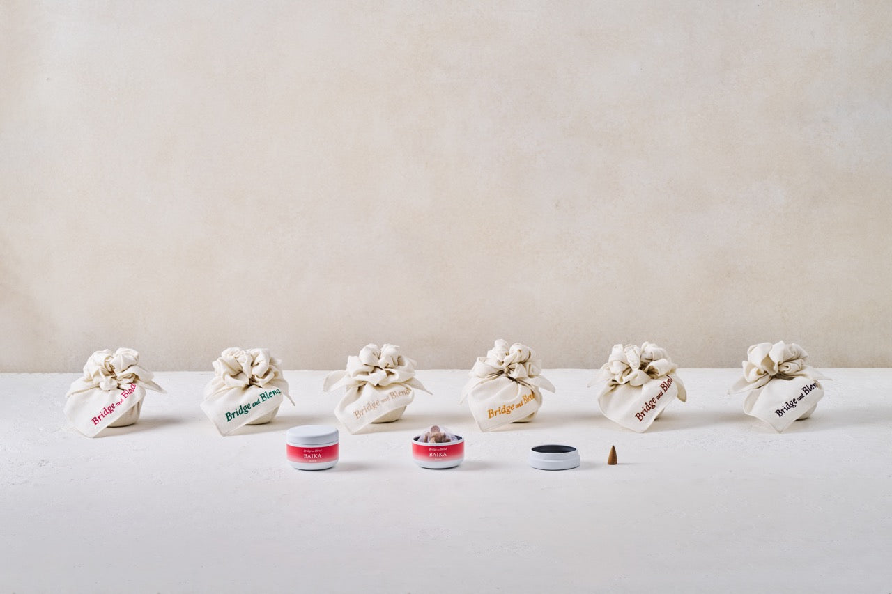 3年目を迎える今年、Bridge and Blend は何度も形を変えてリユースできる点でサステナブルラッピングとしてニューヨークタイムズ紙にも取り上げられた京都の風呂敷屋さん「むす美」さんとのコラボ商品で「日本の香り」をつつみました。